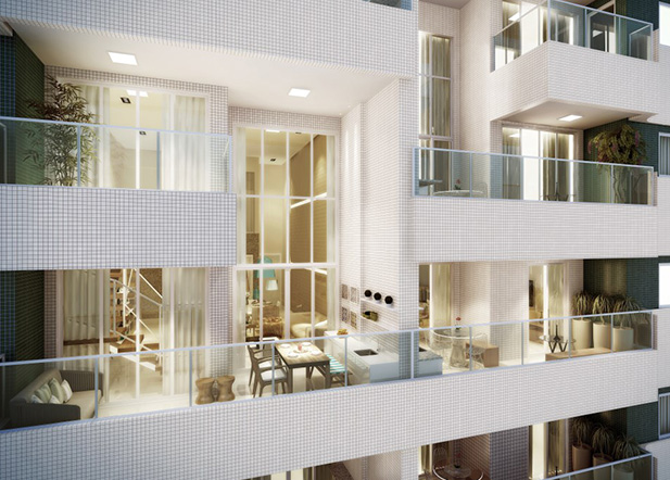 Após inúmeros estudos, limitados em apenas 40 unidades residenciais, propomos a equipe técnica da construtora um agressivo aumento no VGV do empreendimento ofertando apartamentos duplex em meio a edificação, no corpo do prédio e não nas coberturas, como normalmente o mercado está acostumado a trabalhar.